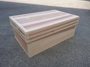 国産の杉板を原料に、熟練の職人によって全て一つずつ丁寧に手作りで作られた木箱です。